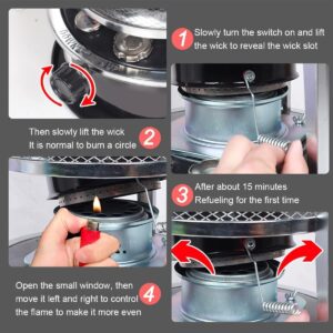 - ◆Multipurpose: Easy to use, portable handle design. The fuel gauge can check the fuel in real time, and the sealed fuel filler cap is more secure. Kerosene stoves can heat, boil, cook and grill at the same time. It is a good partner for camping, picnic, travel, party.