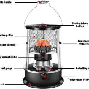 - 【Multipurpose】: Easy to use, portable handle design. The fuel gauge can check the fuel in real time, and the sealed fuel filler cap is more secure. Kerosene stoves can heat, boil, cook and grill at the same time. It is a good partner for camping, picnic, travel, party.