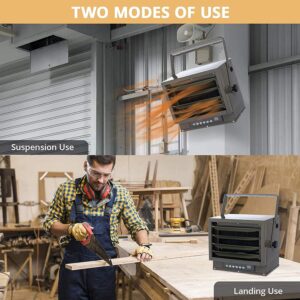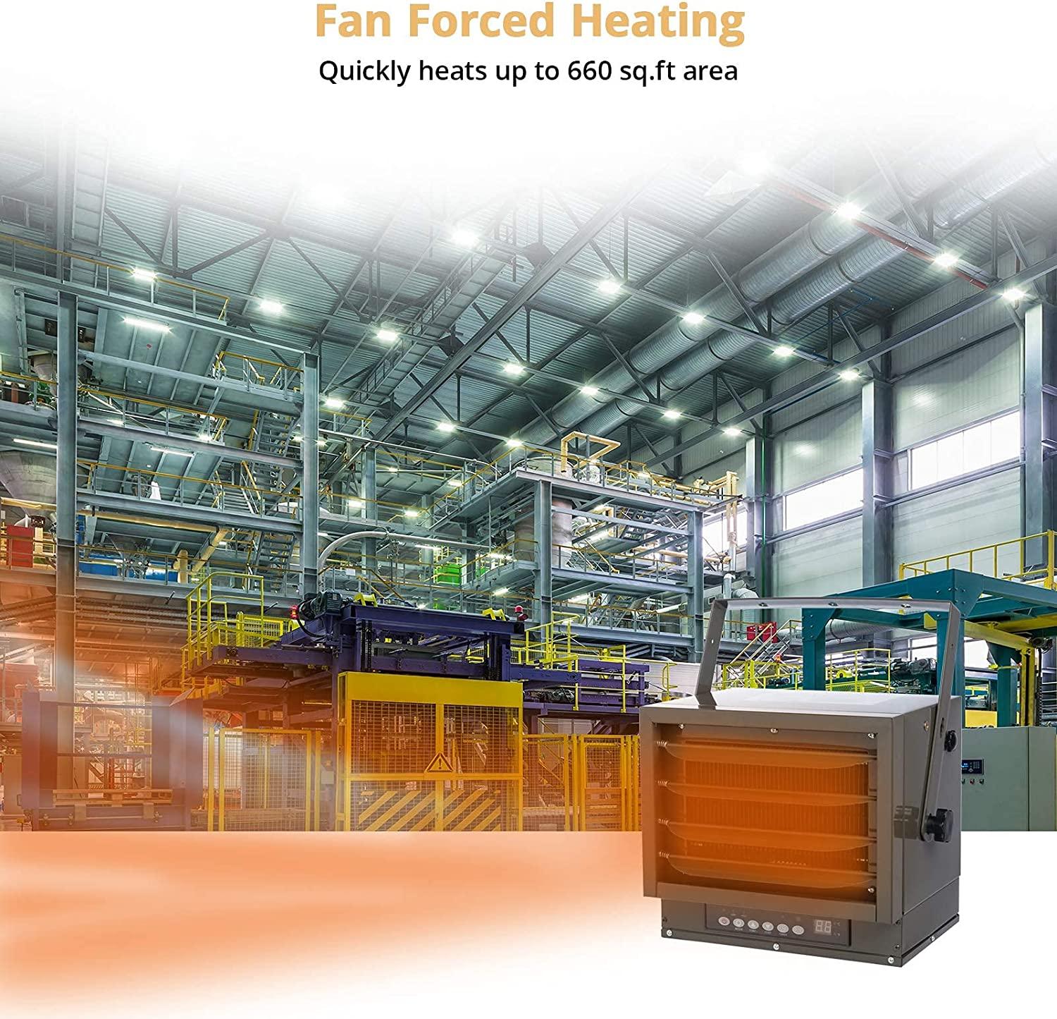 - 2 Versatile Use Modes – The heater for garage has a mounting bracket that can be hung or landed. Garage Heater can be stably placed on the ground or fixed on the wall or ceiling, which is very suitable for factories, workshops and warehouses to save more Space and unnecessary trouble.