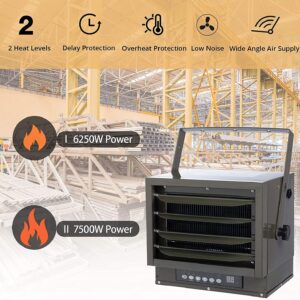 BEYOND BREEZE Electric Garage Heater, 7500W Ceiling Mount Heater with Full-Function Remote, 240-Volt Hardwired Heater with 12-Hour Timer, Ideal for Shop Workshop Warehouse