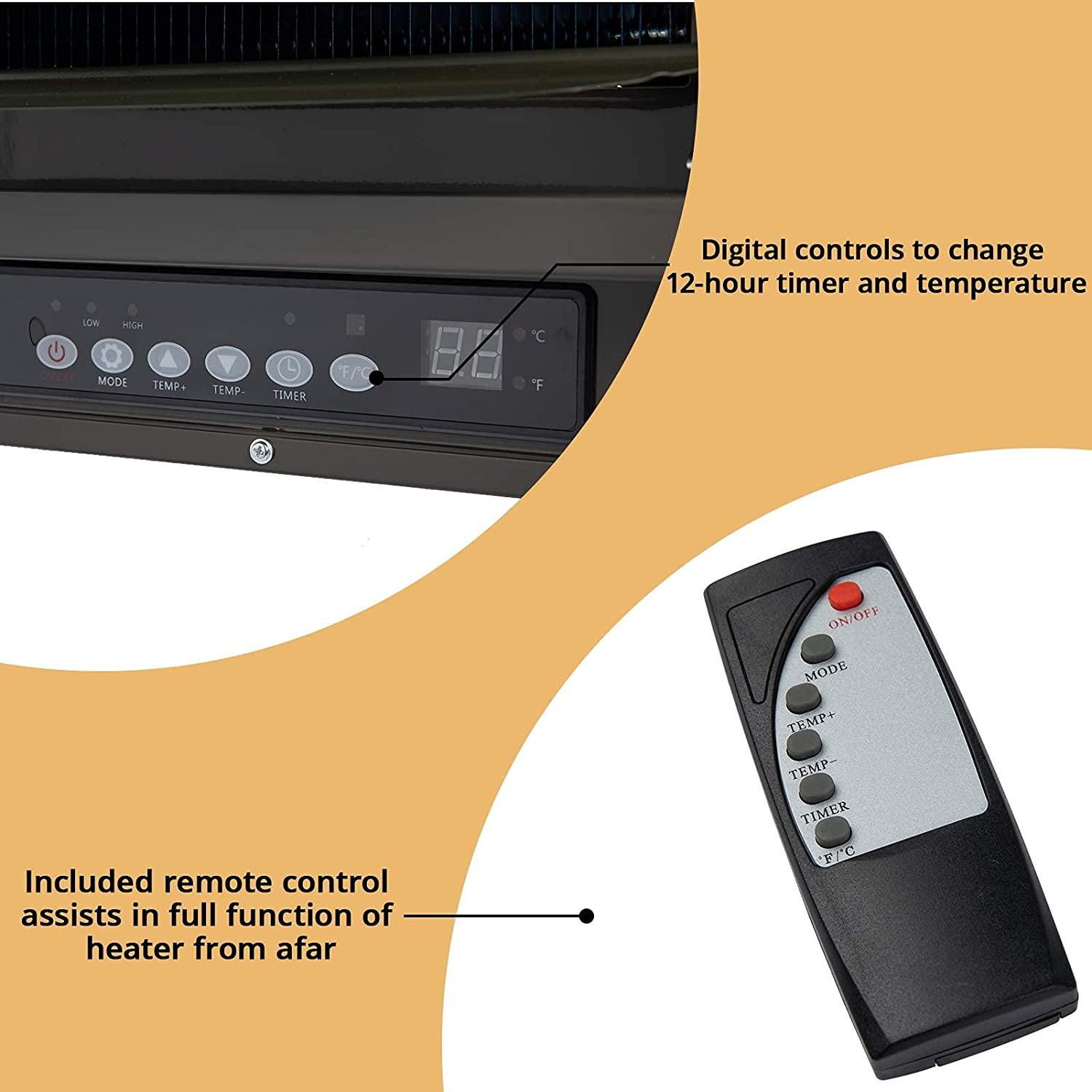 - Convenient Controls – The digital thermostat allows you to adjust the temperature to just the right level for your space, while a remote control makes it easy to change the settings from a distance.