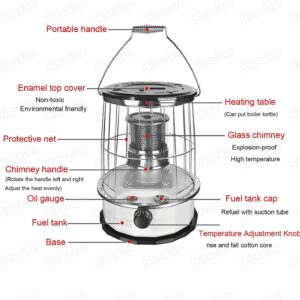 - ☀ The explosion-proof and high-temperature glass chimney makes the kerosene fully burn, and the heating is faster and more efficient.