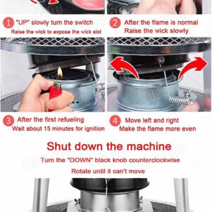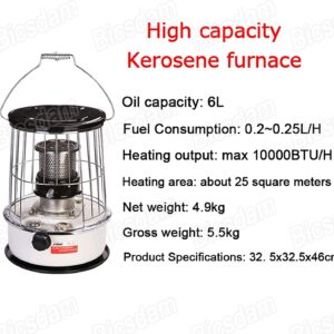 - ☀ Portable kerosene stove heater without electricity. All you need is oil and you will get enough heat. Don’t worry about power outages when hurrican, heavy rain and snow come.