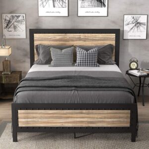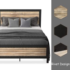 - 【UNIQUNE DESIGN】 Frosted headboard and footboard with the rivets, which made of 29 lbs high quality steel, rich your room in Industrial and unique individualism. The wooden look add elegant element on your life.