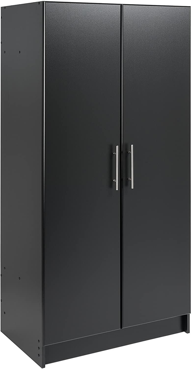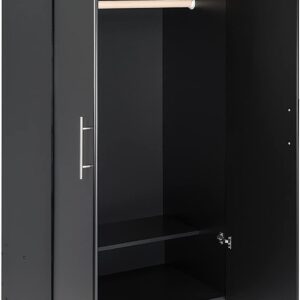 - 2 fixed shelves and 1 hanging rod; 20-inch depth accommodates hangers