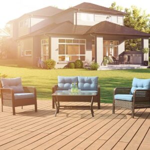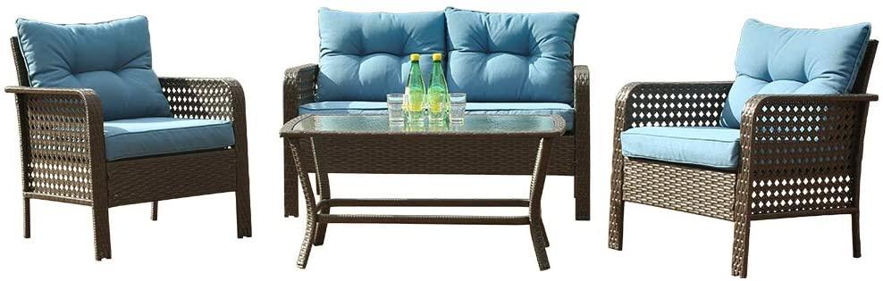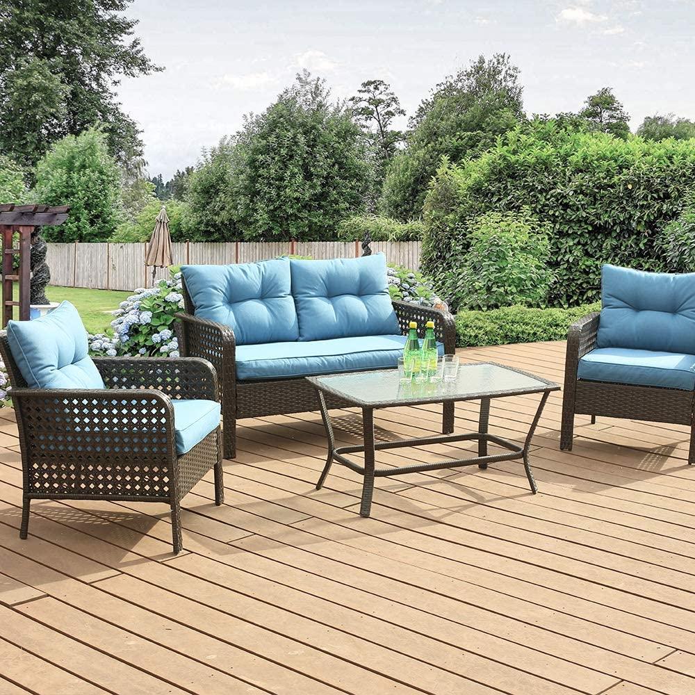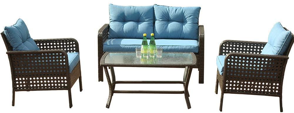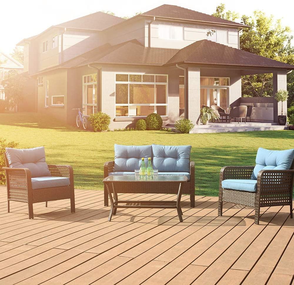 This 4pcs patio rattan wicker furniture set is ideal for outdoor entertainment spaces like patio, porch, backyard, balcony, poolside, garden and other suitable space.