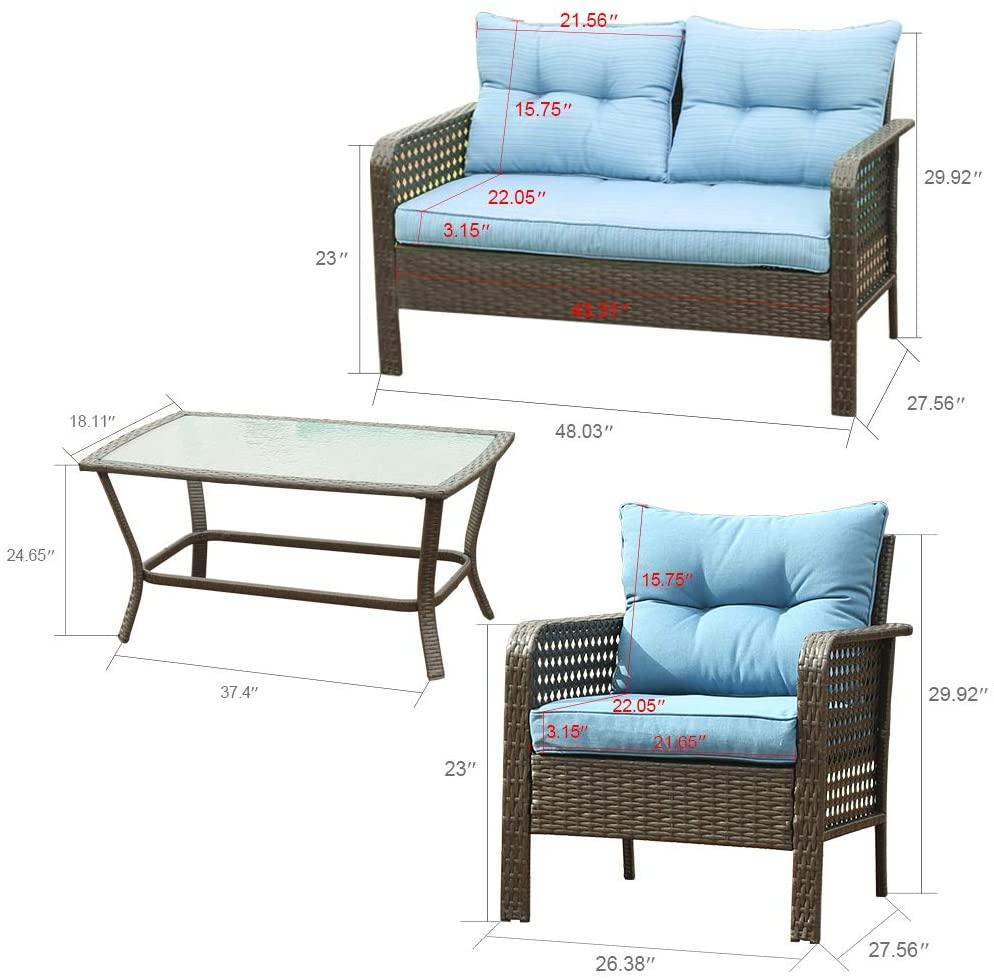 - Sturdy& Durable:Built with strong galvanized steel frame ,which can hold up to 300 lbs/PE rattan wicker performed very well in high tensile strength, water and UV resistance to fit all-weather condition/ Tempered glass for coffee table allows you to place drinks,meals on top. All these designed for a long time use.