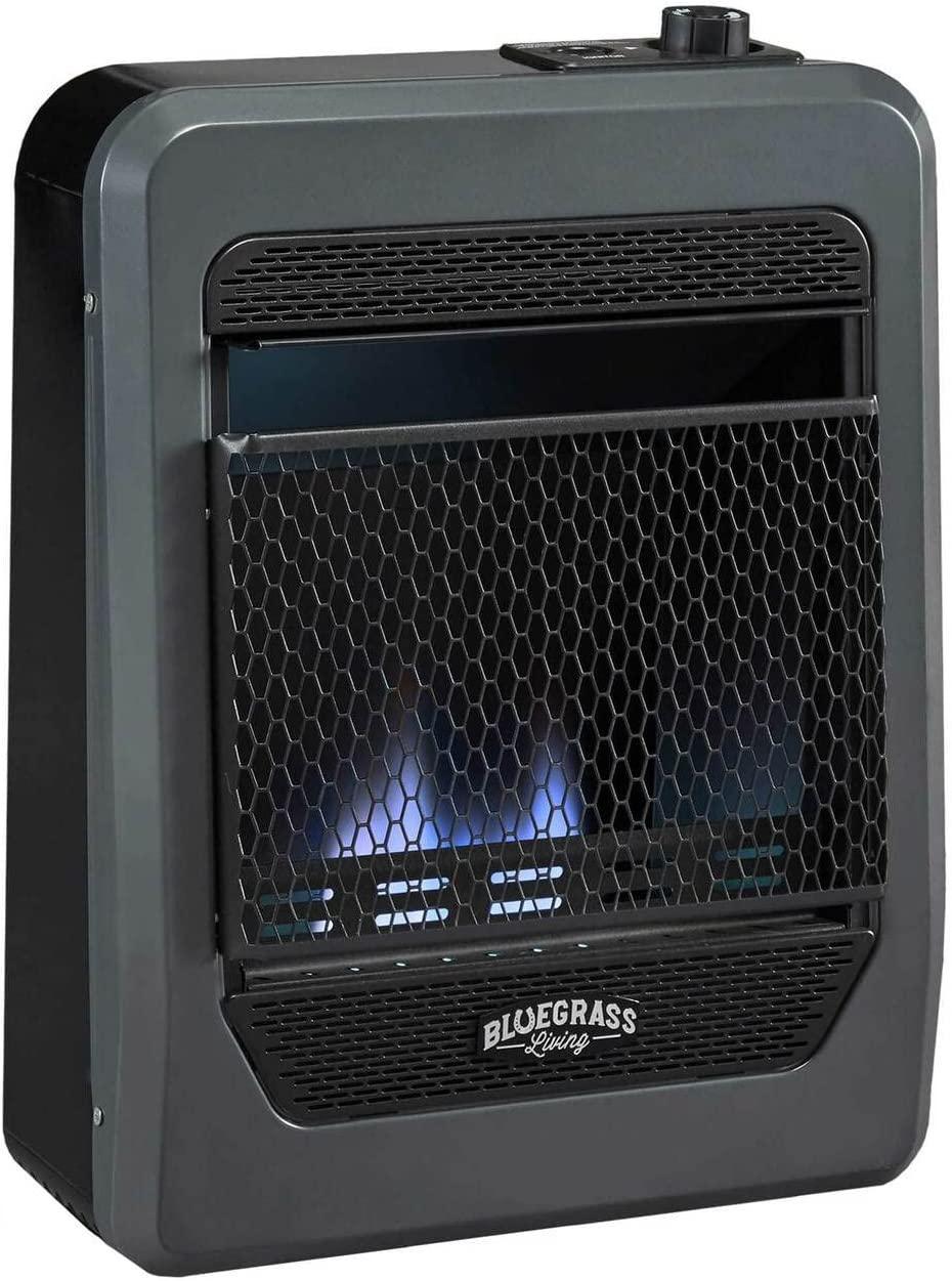 Bluegrass Living Natural Gas Vent Blue Flame Gas Space Heater With Base Feet – 10,000 BTU, T-Stat Control – Model# B10TNB-B-R (Renewed)