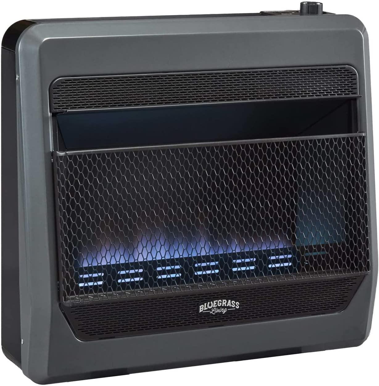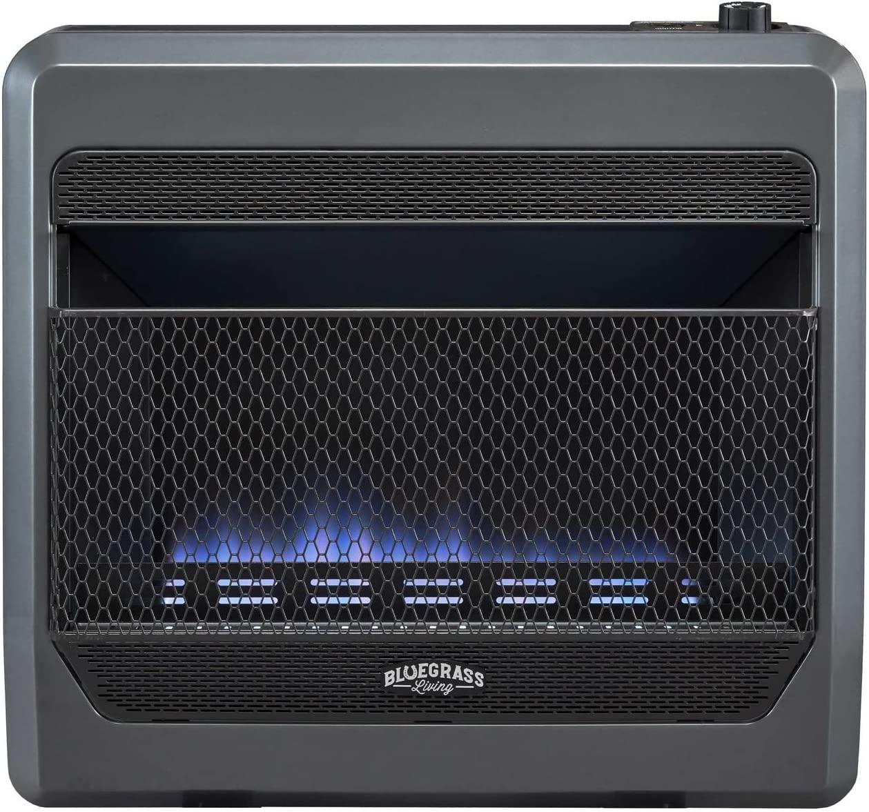 Bluegrass Living Natural Gas Vent Blue Flame Gas Space Heater With Blower and Base Feet – 30,000 BTU, T-Stat Control – Model# B30TNB-BB-R (Renewed)