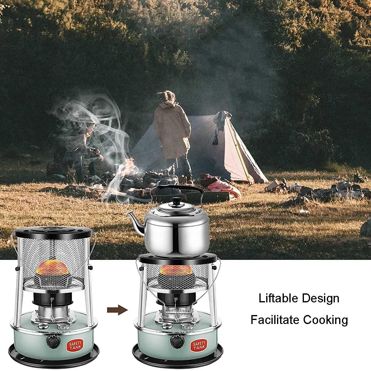 - ?Fire Power Adjustment Knob: The kerosene heater has a rotary adjusting valve to adjust the fire power according to your needs; no noise and glare, easy to use. The heating station on top can be used as a work station to cook food. There is a protective net outside the small kerosene stove to effectively prevent burns.