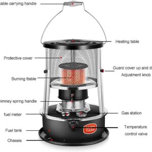 - ✱Special Design: Portable kerosene heaters do not require electricity. You just need oil and you’ll have plenty of heat. The kerosene heater has the characteristics of quietness, energy saving, cleanliness and environmental protection.
