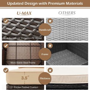 - ⛱️【Excellent Quality】Crafted with high-quality brown resin wicker and powder coated steel, both of them are durable and easy to maintain. UV-protected cushion covers are also waterproof( Not Rain-Proof) and machine washable.The wicker coffee table also features a gorgeous tempered glass top that perfectly highlights your patio or poolside decorate. New design adjustable foot pad can keep our sofa set from shaking even on uneven ground.