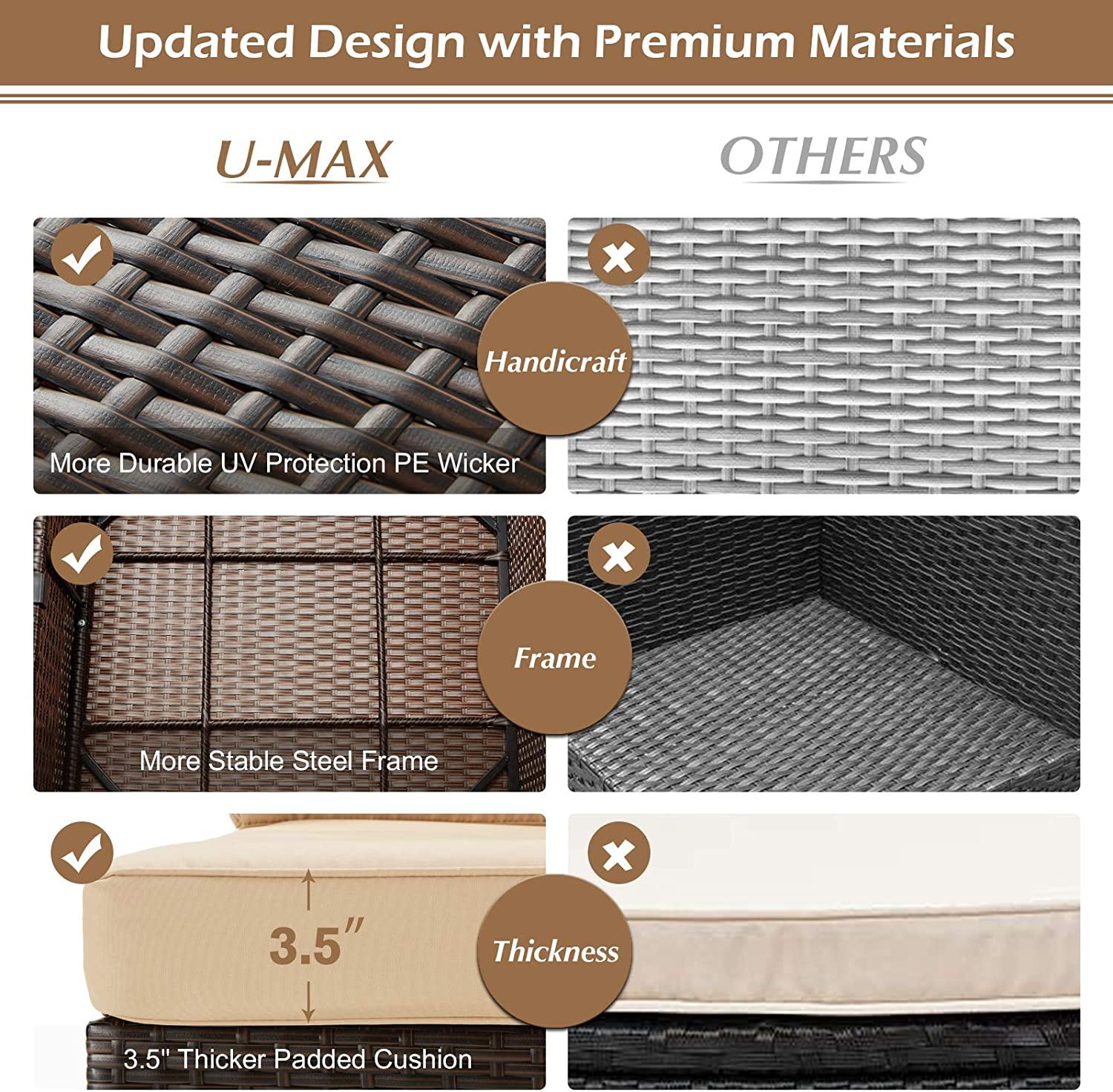 - ⛱️【Reliable Customer Service】We are glad to provide your any necessary support if our furniture set has any shipping damage, defective or missing parts or other quality issues within 6 month and we also provide 1-year quality support on the frame, rattan and fabric.