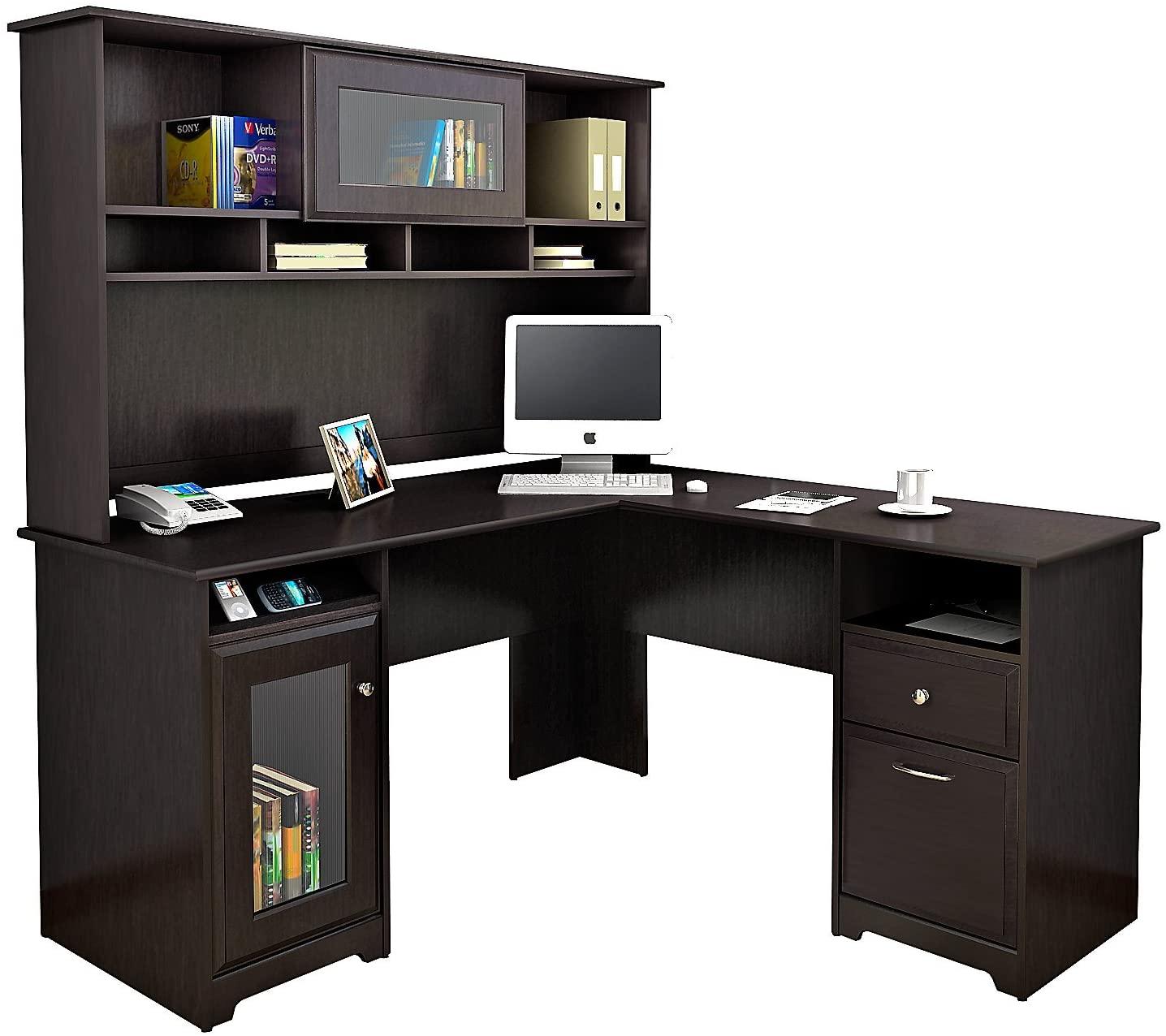 - Your purchase includes One Cabot L-Shaped Desk with Hutch in Espresso Oak, CAB001EPO model | This bundle includes RTA CA1 60” L-Desk, 60W L Desk & Hutch