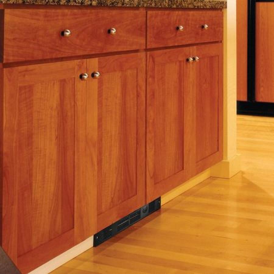 Electric Kickspace Heater, Rough-In Height 3 1/2 in, Rough-In Width 14 1/2 in, Rough-In Depth 8 1/4 in, Wattage Output 1000W, Housing Color Black, Housing Finish Powder Coated, Heating Method Electric Heat, Heating Capacity 3415 BtuH, Thermostat required (sold separately, Voltage 120V AC, 1 Phase, Mounting Type Recessed, Air Flow 32 cfm, Amperage 8.3A, Frequency 60 Hz, Grille Height 3 1/2 in, Grille Width 18 in, Grille Color Black, Grille Finish Powder Coated, Grille Material Metal