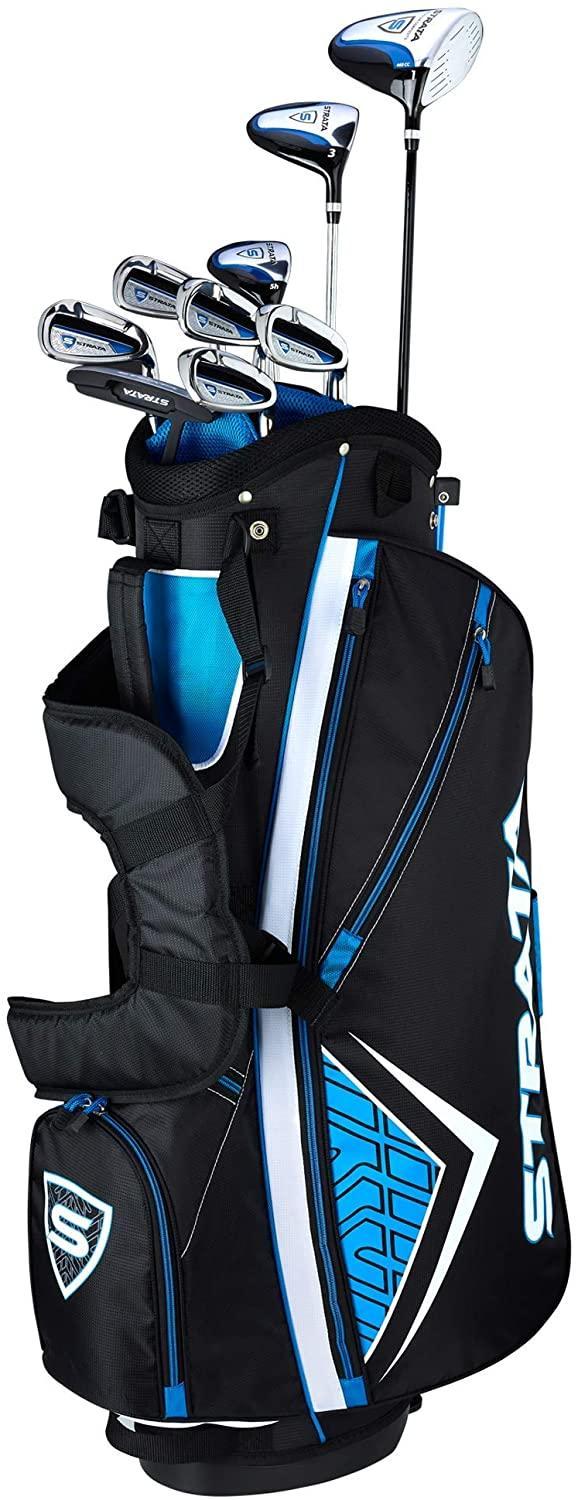 - The Strata 12 piece set is designed for maximum performance right out of the box; The set includes: Driver, 3 Wood, 5 Hybrid, 6 – 9 Iron, PW, Putter, Stand Bag and 2 Head covers