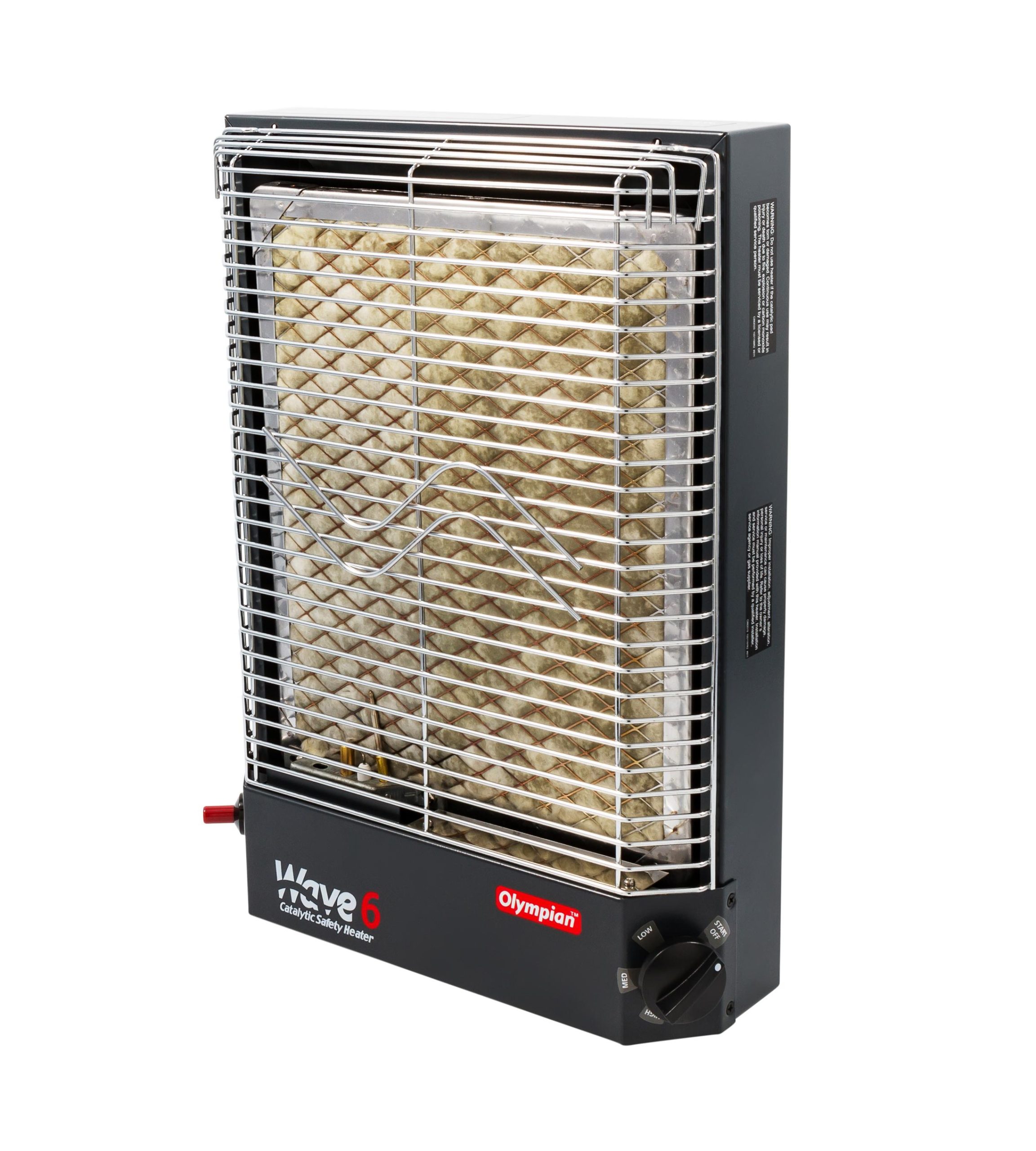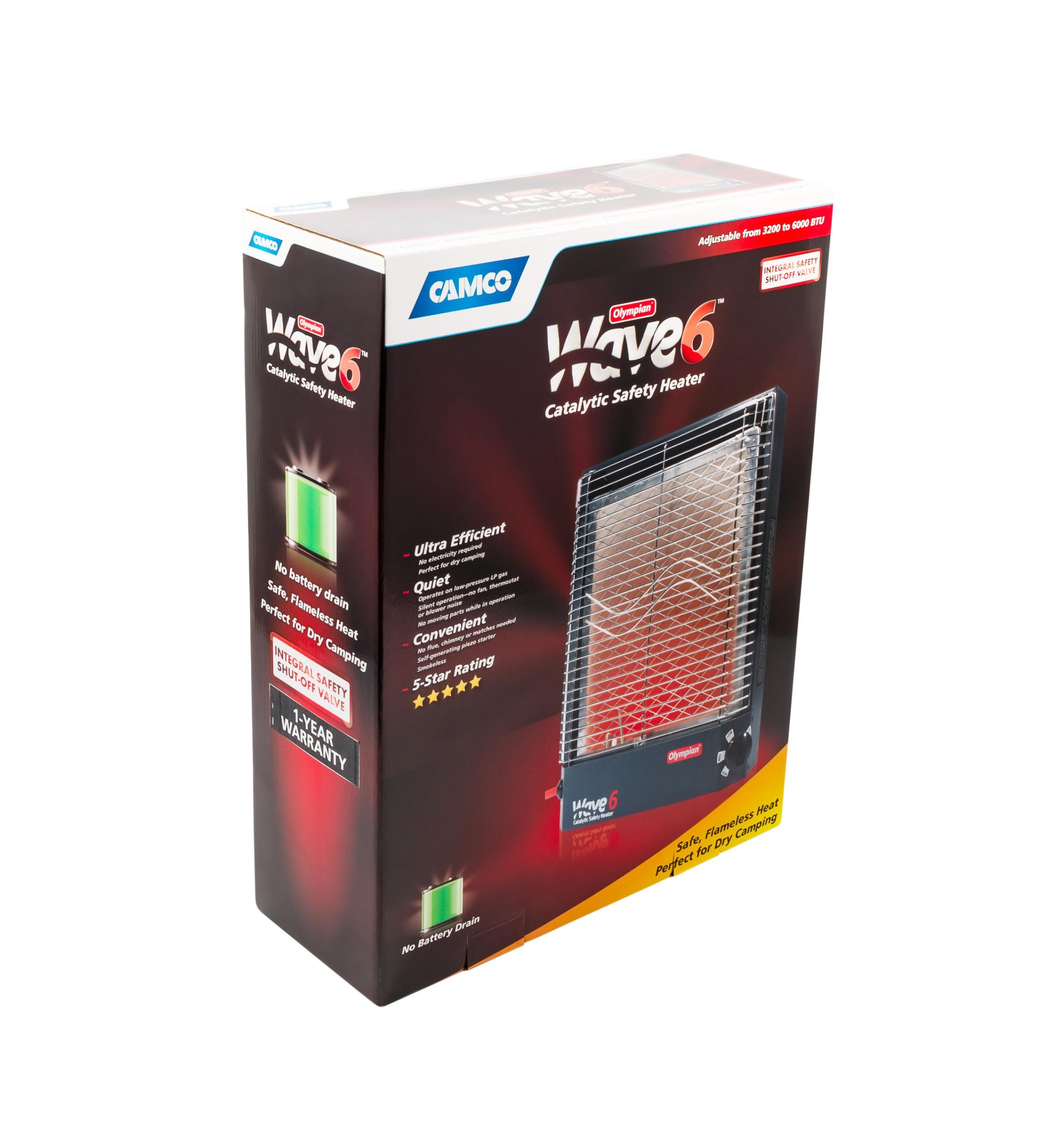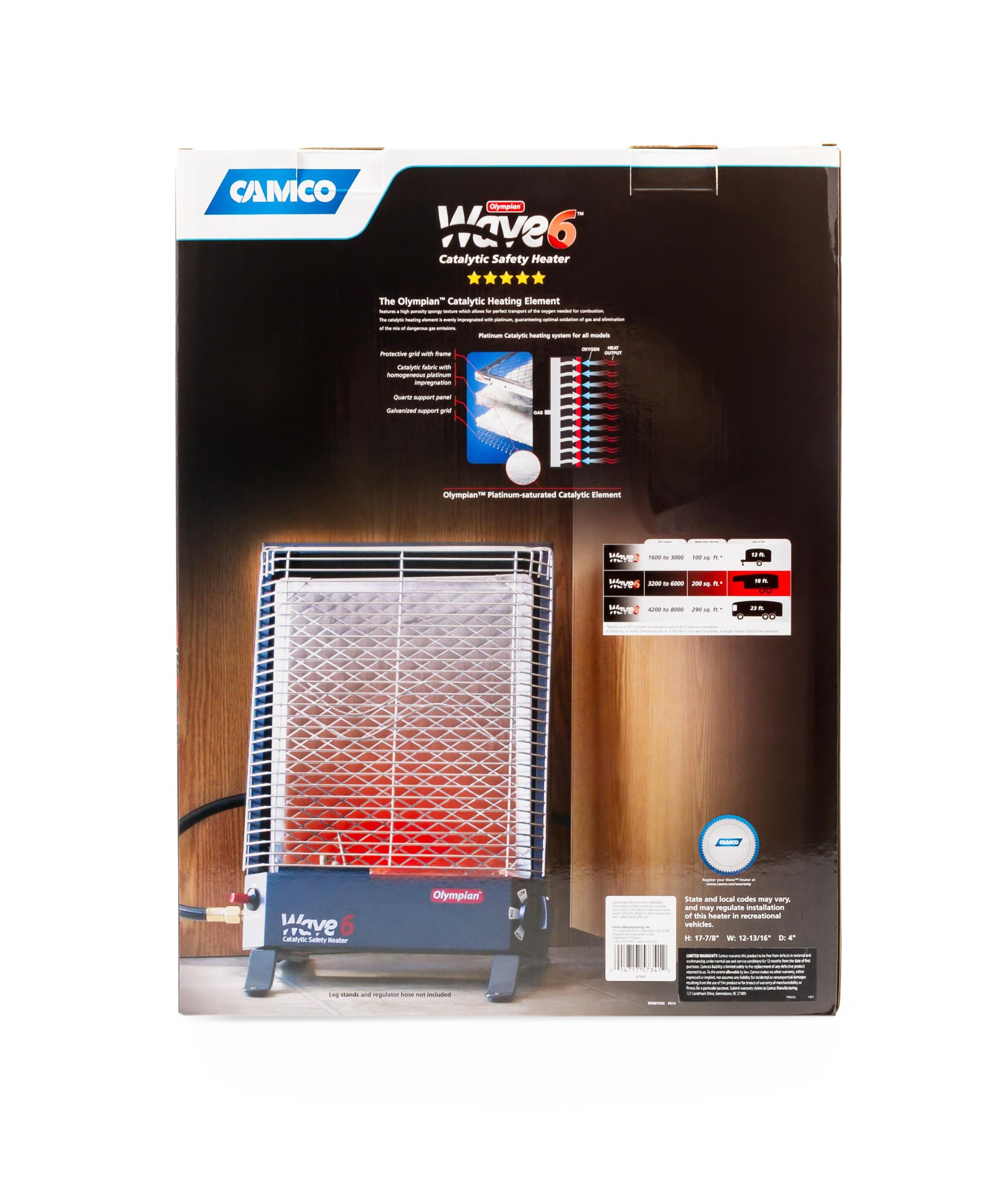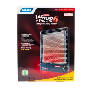 Camco Olympian RV Wave-6 LP Gas Catalytic Safety Heater, Adjustable 3200 to 6000 BTU, Warms 230 Square Feet of Space, Portable and Wall Mountable