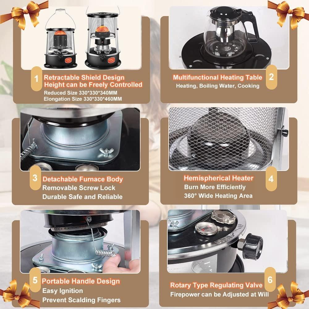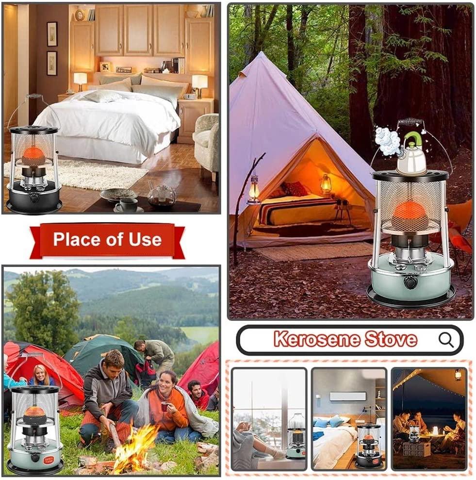 - ❤【Fire Power Adjustment Knob】Oil Heater has a rotary adjusting valve, which can adjust the fire power according to your needs; no noise and glare, easy to use. The heating station on top can be used as a work station to cook food. There is a protective net outside the small kerosene stove to effectively prevent burns.