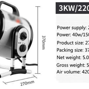 CJGKDJS Small Industrial Heater,3kw Space Fan Heater,Electric Heating,3-Speed Temperature Control Knob,Energy-Saving,for Household,Office. (PTC Ceramics)