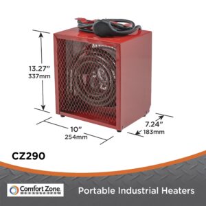 Comfort Zone 4800W, Industrial, Electric, Portable Fan Forced Workshop Space Heater, Red