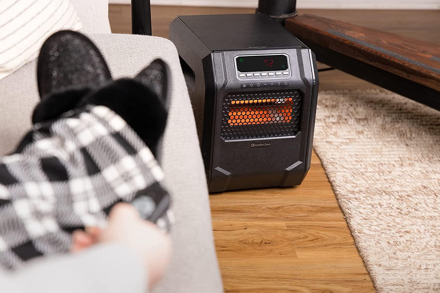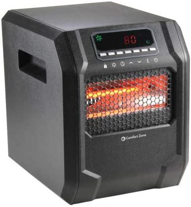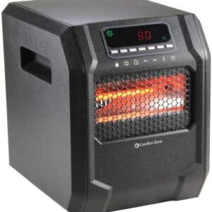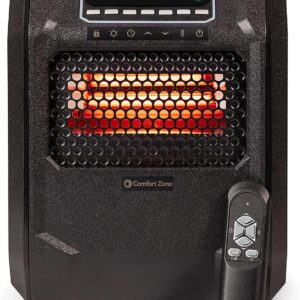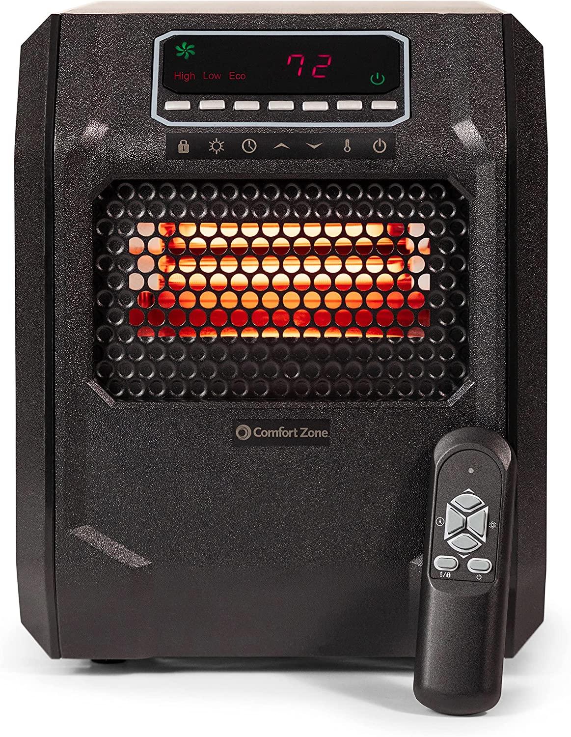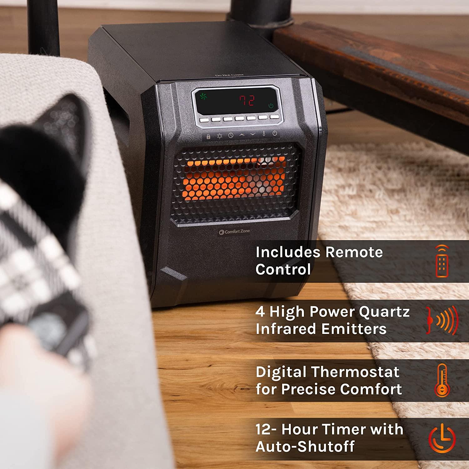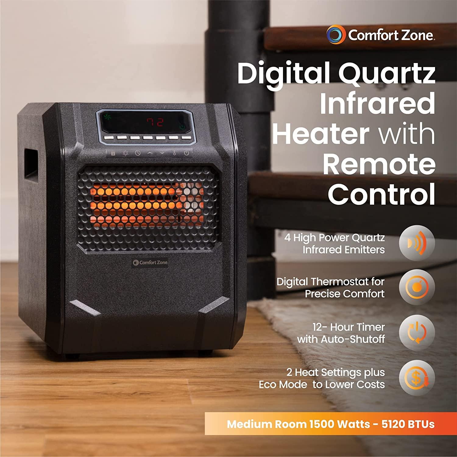 Comfort Zone CZ2018 750/1,500-Watt Digital Quartz Infrared Cabinet Space Heater with Remote Control, 12-Hour Timer, Digital Display, Overheat Protection, and Safety Tip-Over Switch, Black