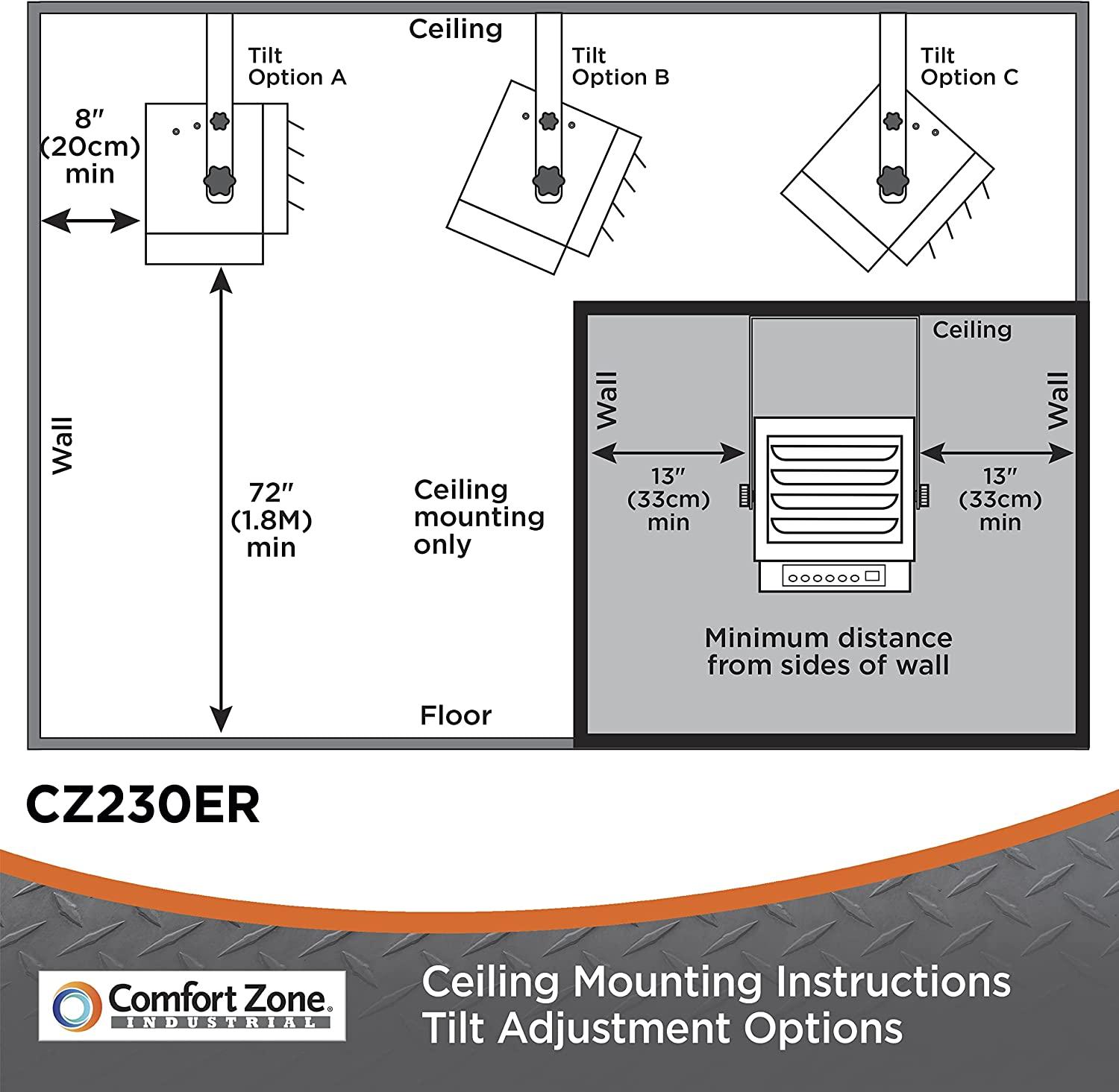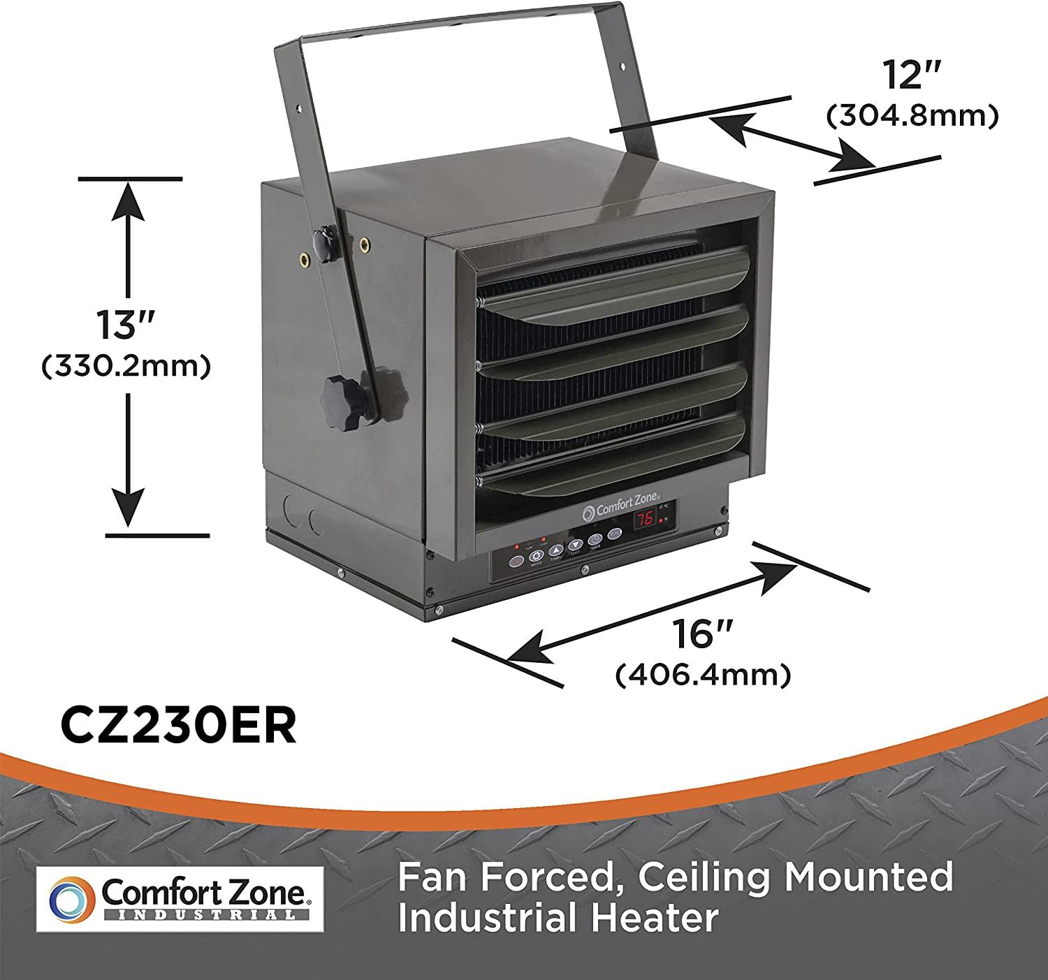- SPACE-SAVING DESIGN: The fan-forced heater is designed for ceiling mounting and hard-wired installation, which saves valuable floor space in a packed warehouse, garage or storage area.
