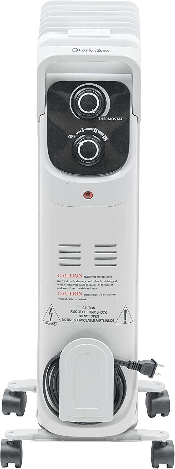 Comfort Zone CZ8008 1,500-Watt Electric Oil-Filled Radiant Radiator Heater, Permanently Sealed, Never Refill, Adjustable Thermostat, Stay-Cool Handle, Tip-Over Switch & Overheat Protection System