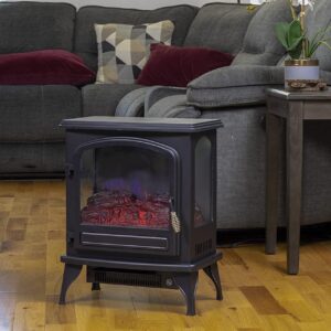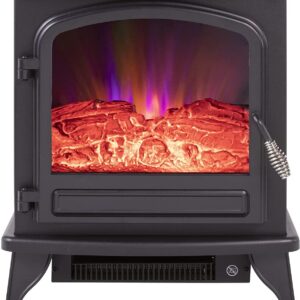 - REALISTIC FLAME EFFECT: This electric stove heater features a fireplace design with realistic LED-simulated 3D flame and ember bed for a warm, traditional look. The flame effect operates with or without heat and can be viewed through three viewing windows.