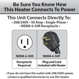 Comfort Zone Portable Industrial Heater – 240V, 10000W Large Room Space Heater with 3 Heat Settings, Thermostat Control, Heater Fan – Adjustable Tilt Head, Overheat Protection – With Handle & Wheels