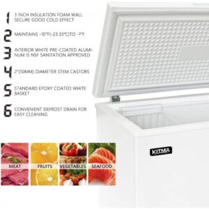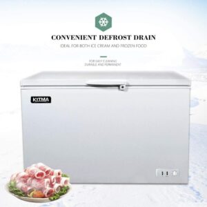 Commercial Chest Freezer – Kitma 9.6 Cu. Ft Deep Ice Cream Freezer with 2 Storage Baskets, Adjustable Thermostat, Lock,Rollers, White