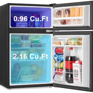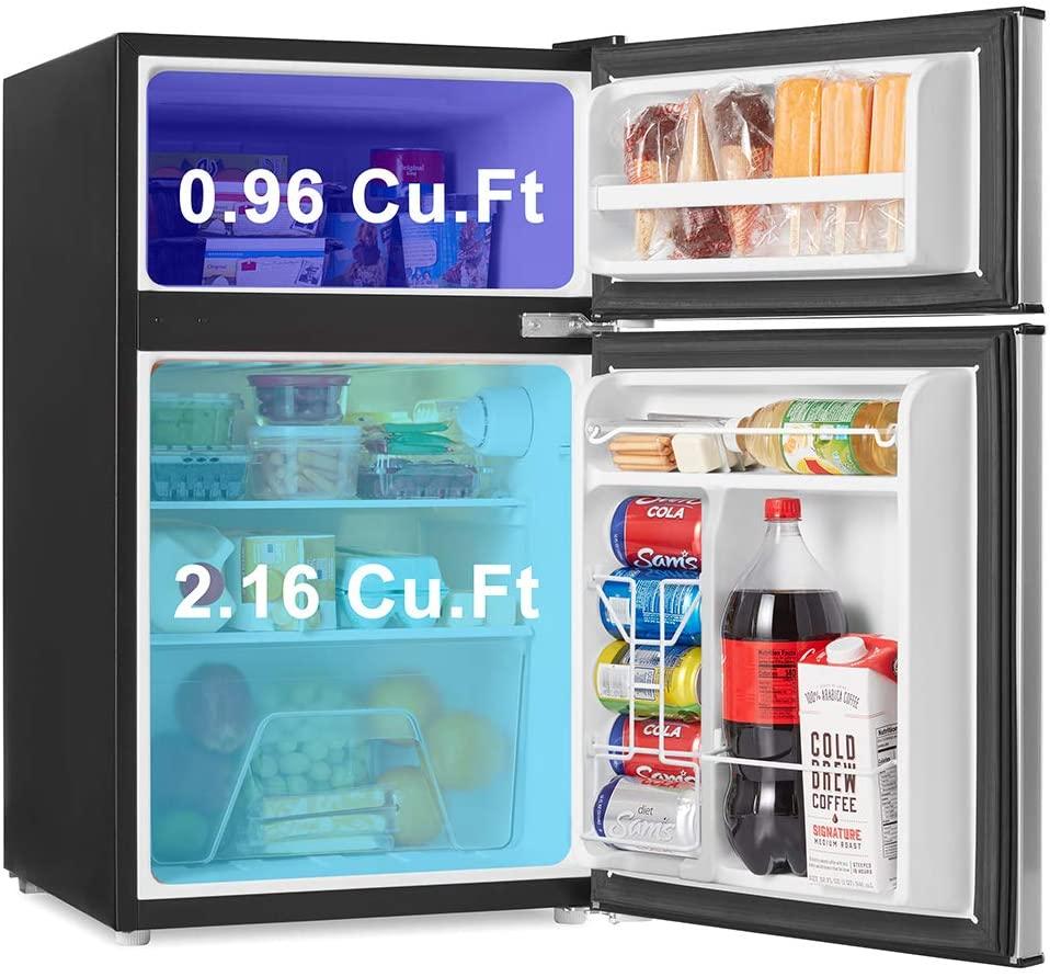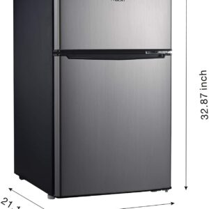 - 【COMPACT & STYLISH】 This space saving refrigerator (19.13*21.10*32.80 inches) stores food, soda, beer, and other beverages with minimal energy and without taking up too much space. The sleek, modern design refrigerator is perfect for college dorm rooms, offices, garages, home bars.