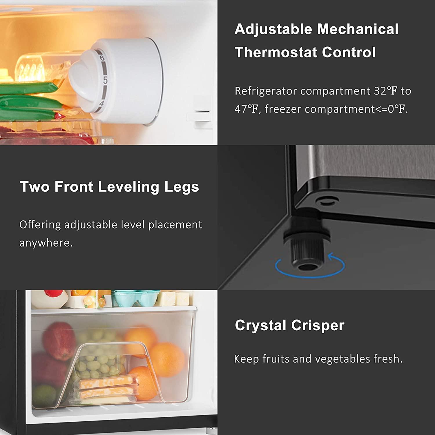 - 【ADJUSTABLE MECHANICAL THERMOSTAT CONTROL】Refrigerator can be controlled manually with the control dial from 0-7, you can turn the knob to set the temperature you want. And the temperature range for refrigerator compartment is 32°F to 47°F, freeze compartment<=0°F.