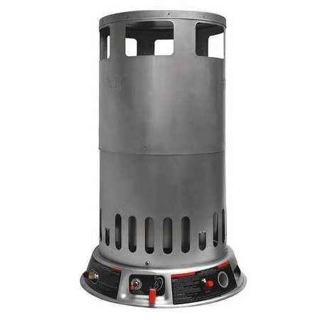 Product Type Portable Gas Convection Can Heaters, Fuel Type Propane, Heating Capacity Output 200,000 BtuH, Heating Area 4,700 sq ft, Minimum Cylinder Size 100 lb, Ignition Type Matchless Piezo, Ignition Power Source Manual, Overall Height 26 3/16 in, Overall Width 15 7/8 in, Overall Depth 15 7/8 in, Safety Features Fuel Shut-off Device, Features Fuel Shut-off Device, One Hand Piezo Ignition, Variable Output, For Use Outdoors Indoor/Outdoor, Fuel Consumption 9.28 lb/hr, Heater Style Can