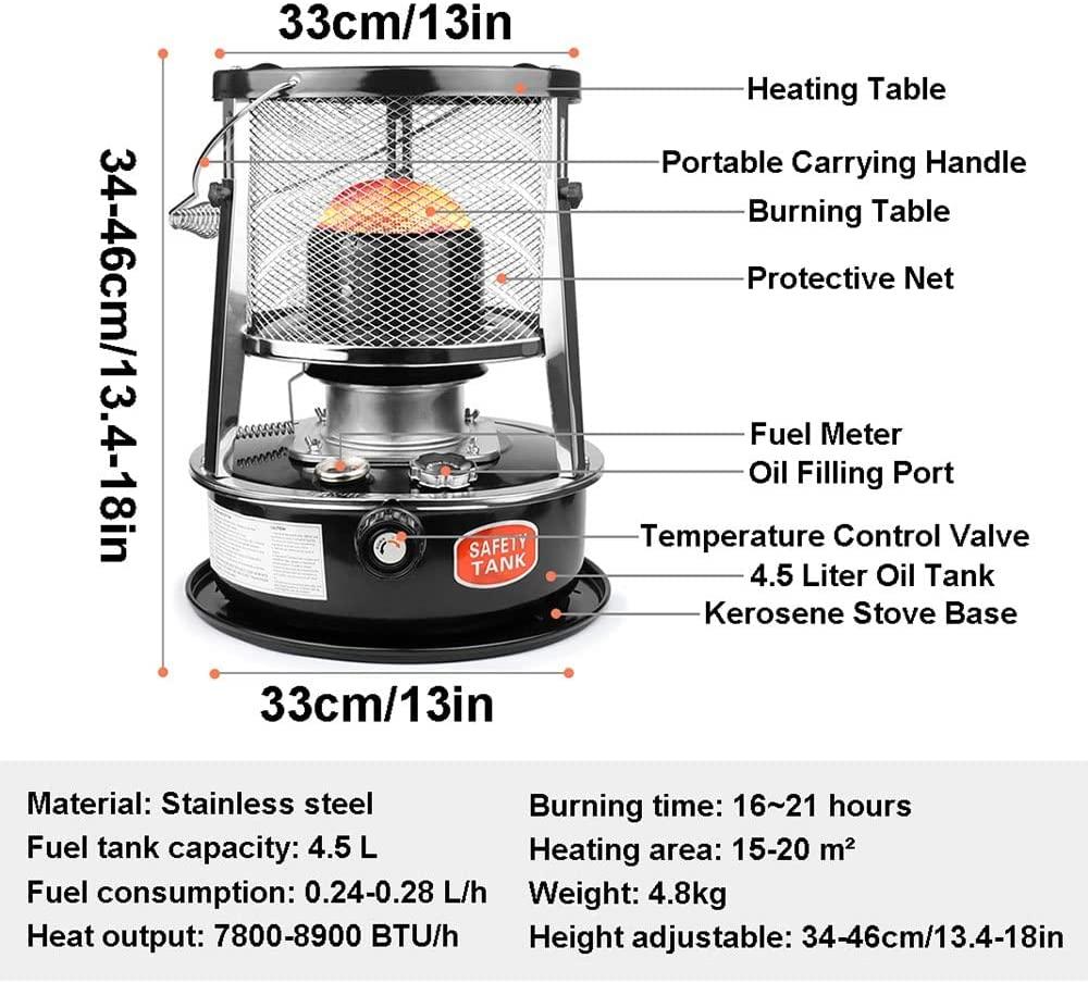Convection Kerosene Stove Heater, 360° Surround Heating, 4.5L Kerosene Stoves Cooker Burner for Winter Outdoor Camping