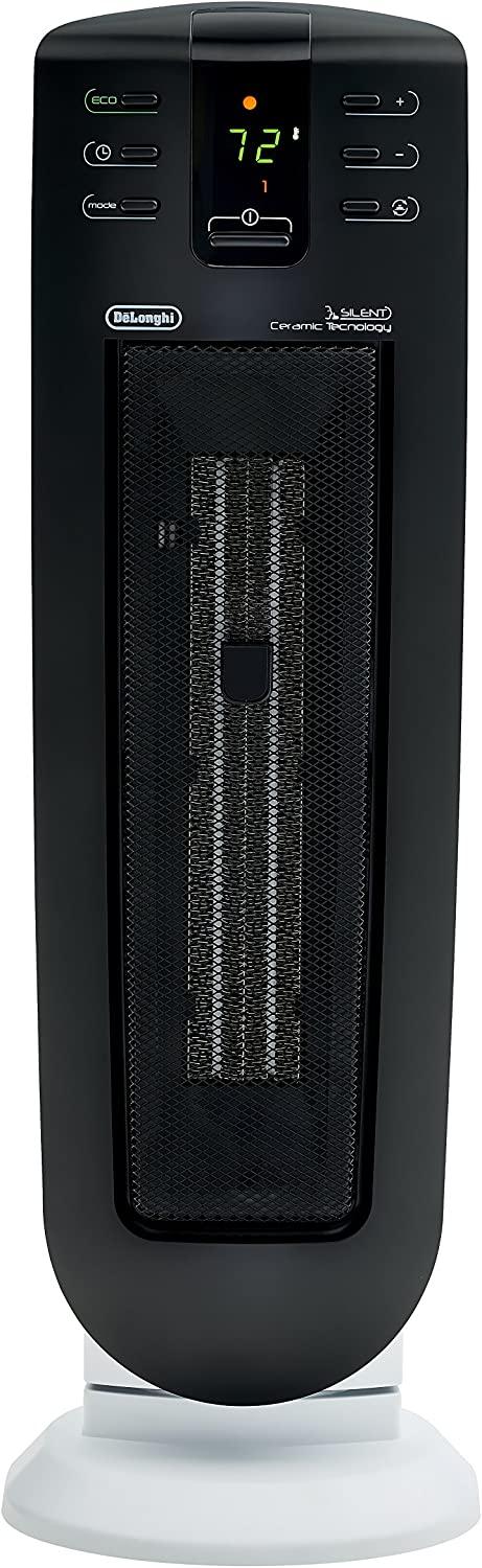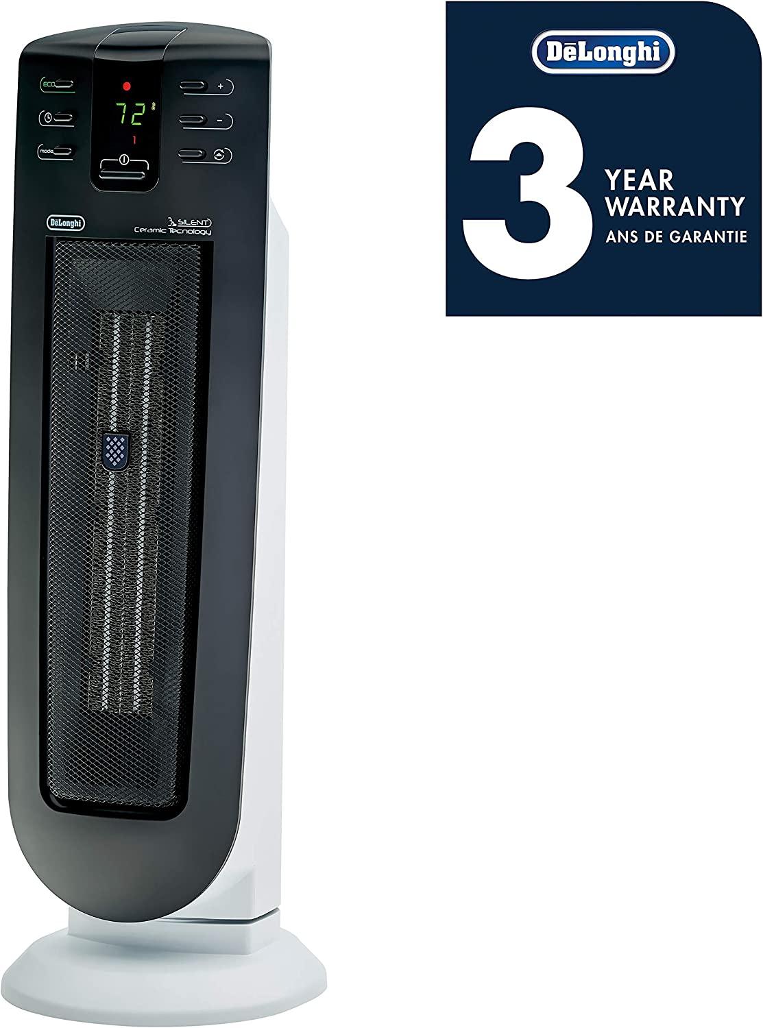 De’Longhi Ceramic Tower Heater, Quiet 1500W, Digital Adjustable Thermostat, 3 Heat Settings, Timer, Remote Control, ECO Energy Saving Mode, Safety Features, 24″, Dark Gray, TCH7915ER
