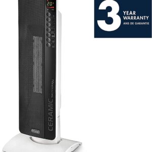 - Flat panel design 1500-watt digital ceramic tower heater for instant focused personal heat in small to medium rooms