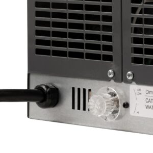 - Heavy-duty stainless steel garage heater features a powder-coated epoxy finish with corrosion-resistant heating elements to ensure durability