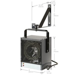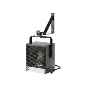 Dimplex 240 volt electric garage heater heavy duty steel unit heats fast thanks to the powerful fan and the 4000 watt stainless steel heater element. It comes with a versatile bracket that attaches to the wall or ceiling. The bracket allows the heater to swivel and direct the heat where required. The heater’s mounting hardware allows the direction of airflow to be adjusted up or down. Additionally, the heater can be placed onto a workbench or other solid surface. The DGW garage / workshop heater comes complete with an automatic temperature control to maintain consistent temperature. The unit has a powder coated epoxy finish, and the casing element and fan blade are corrosion resistant, all designed to provide long product life. If the airflow should become restricted for any reason, the unit automatically shuts off.