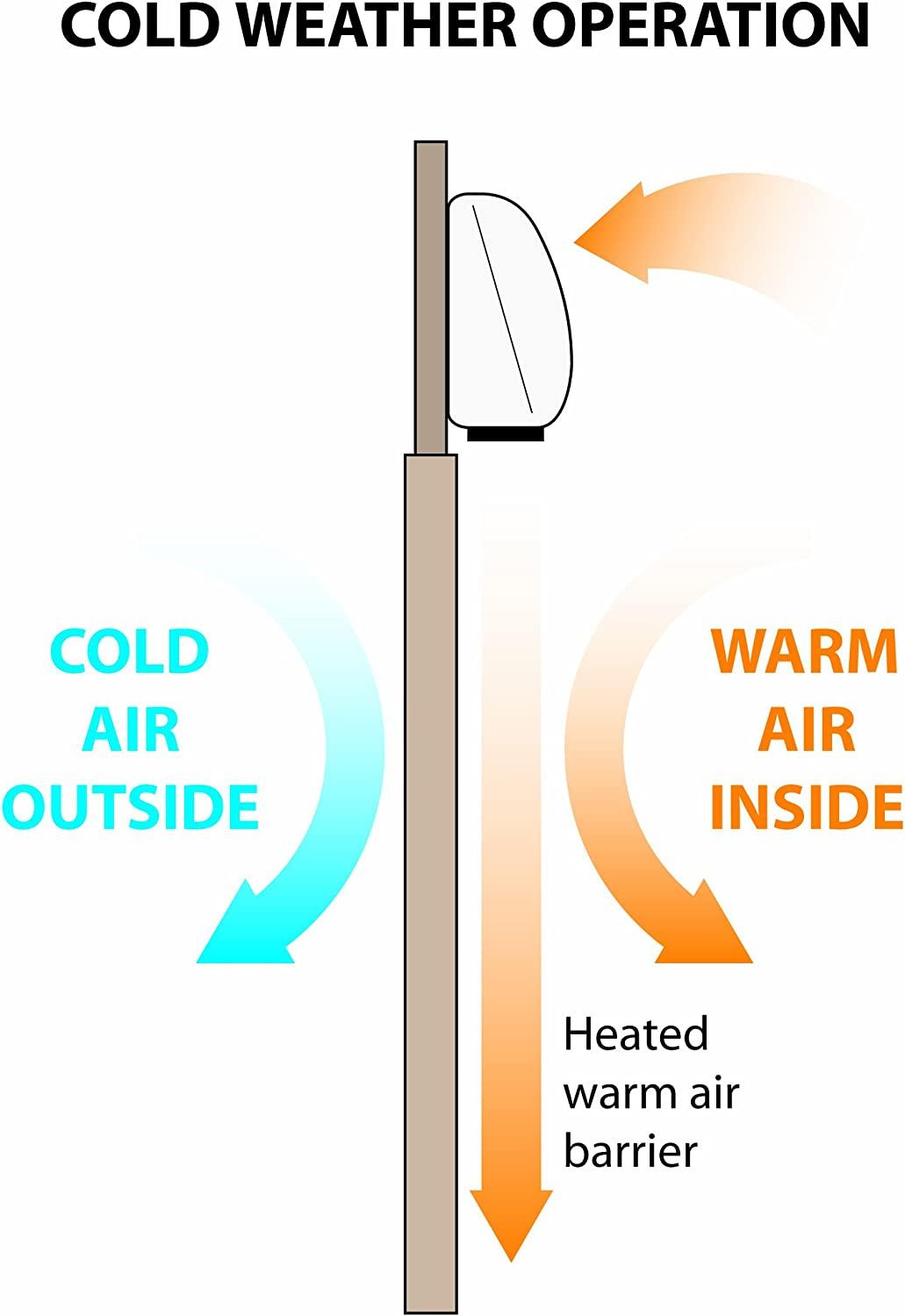 - Electric down-flow heater for use over single doorways or drive-through windows