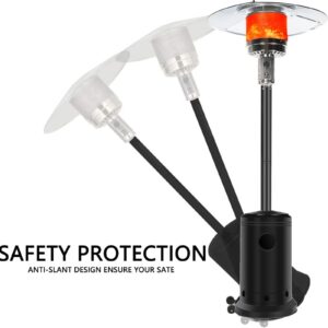 Outdoor Patio Heater With Wheels,Propane 46,000 BTU Premium Outdoor Patio Heater<br>Feature:<br>Commercial Type : Pumping out 46,000 BTUs for an 32.8-foot diameter heat range, these units are the most powerful patio heaters in the market. They can also be wheeled away, ensuring exceptional mobility despite their hefty size. Heavy duty yet gorgeous with a stylish finish options, they are perfect for serious outdoor entertainers with big spaces. Double support bar design can effectively save packaging size and make you worry less Simple Start: Up Piezo Ignition System -To operate, all it takes to light the heater is a simple push of the button thanks to its user-friendly, ONE-STE-P, Piezo ignition system<br>46,000 BTUs of Heat : The heavy-duty patio heater offers an impressive heat output of 46,000 BTUs. Mid-winter merry-making? No problem. Even more, the unit heats a wide area with a range of up to 32.8 feet in diameter. A nice alternative to a fire pit, the gas patio heater delivers quiet, soothing, consistent heat–with no smoke or open flames to worry about<br>Variable-heat control knob : Allows for low or high heat settings and for turning the heater completely off at the end of the night.<br>Wheels for Smooth Mobility :A wheel assembly with two smooth-rolling wheels comes included, making it easy to transport the outdoor heater from poolside to patio or from one side of the deck to the other; Heat Output: 46,000 BTU; Heat Range: 10m(32.8′ Radius) Patio heater:<br>Material: Iron with powder coated<br>Color: Black<br>Supply and exhaust mode: direct exhaust<br>Double support rod Power: 5-13kw<br>Heat dissipation range diameter: 10M<br>Gas consumption: 0.45kg/h-0.87kg/h<br>Ignition life: 50000 times<br>Temperature regulation: adjustable<br>Gas Type: Propane, Butane and mixtures (LPG) Heat output: 46,000BTU<br>Piezoelectric ignition<br>With Anti-tilt switch and automatic shut-off device Sectional/4-pc aluminum reflector<br>Hose&Regulator INCLUDED<br>Brown Carton. 1pc in 1 carton.<br>Product height: 221cm / 87 inch<br>Top cover diameter: 81cm / 31.8 inch<br>Package size: 77x46x46cm / 30.31×18.11×18.11 inch<br>GW/NW: 18.4KG/15KG<br>Certifications: CE&CSA<br>The Package Include:<br>1 x Patio heater<br>1 x Installation package<br>1 Pair of wheels<br>1 x Pressure reducing<br>valv-e<br>1 x Hose<br>1 x Instruction<br>