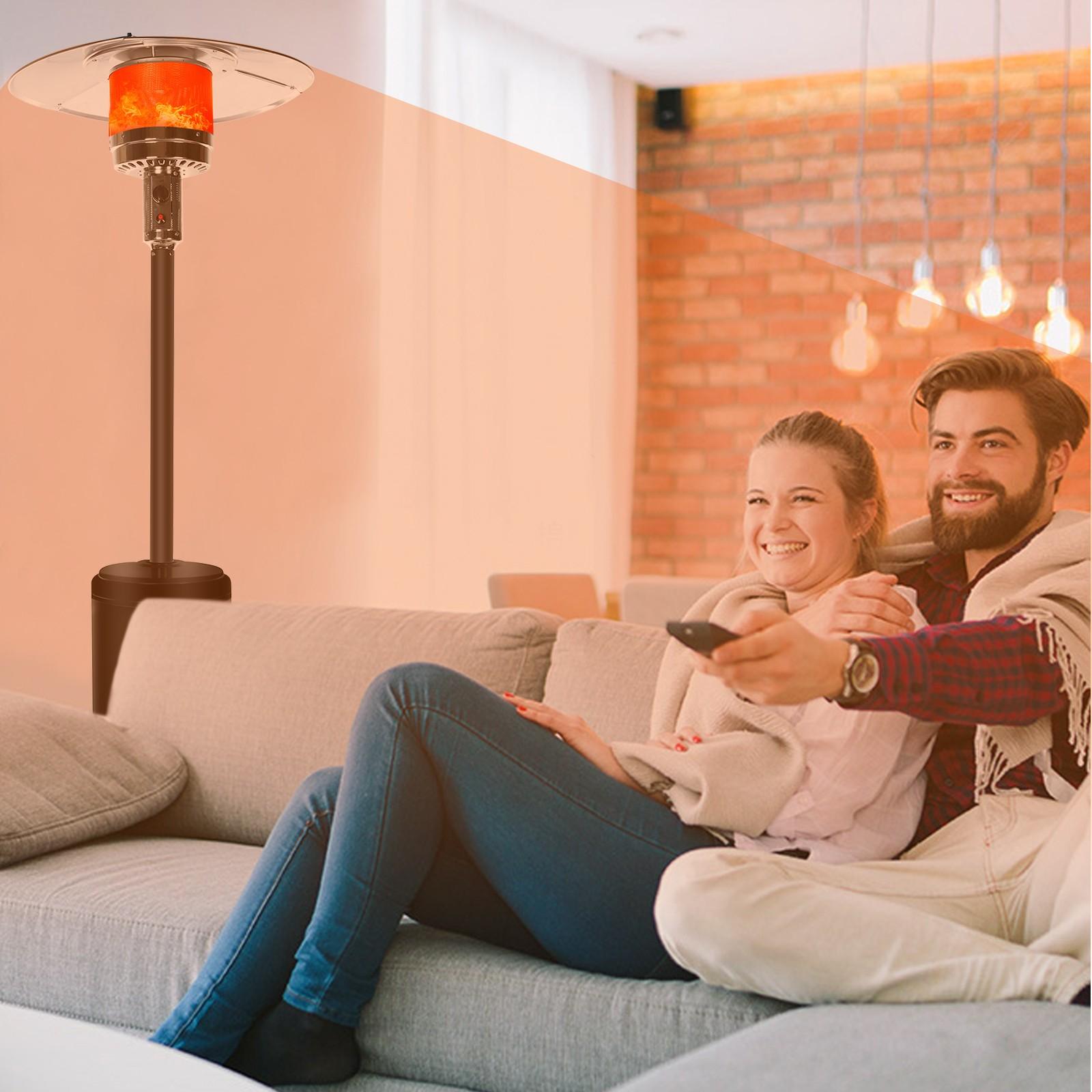Outdoor Patio Heater With Wheels,Propane 46,000 BTU Premium Outdoor Patio Heater<br>Feature:<br>Commercial Type : Pumping out 46,000 BTUs for an 32.8-foot diameter heat range, these units are the most powerful patio heaters in the market. They can also be wheeled away, ensuring exceptional mobility despite their hefty size. Heavy duty yet gorgeous with a stylish finish options, they are perfect for serious outdoor entertainers with big spaces<br>Simple Start: Up Piezo Ignition System -To operate, all it takes to light the heater is a simple push of the button thanks to its user-friendly, ONE-STE-P, Piezo ignition system<br>46,000 BTUs of Heat : The heavy-duty patio heater offers an impressive heat output of 46,000 BTUs. Mid-winter merry-making? No problem. Even more, the unit heats a wide area with a range of up to 32.8 feet in diameter. A nice alternative to a fire pit, the gas patio heater delivers quiet, soothing, consistent heat–with no smoke or open flames to worry about<br>Variable-heat control knob : Allows for low or high heat settings and for turning the heater completely off at the end of the night.<br>Wheels for Smooth Mobility :A wheel assembly with two smooth-rolling wheels comes included, making it easy to transport the outdoor heater from poolside to patio or from one side of the deck to the other; Heat Output: 46,000 BTU; Heat Range: 10m(32.8′ Radius) Patio heater:<br>Material:Iron with powder coated<br>Supply and exhaust mode: direct exhaust<br>Power: 5-13kw<br>Heat dissipation range diameter: 10M<br>Gas consumption: 0.45kg/h-0.87kg/h<br>Ignition life: 50000 times<br>Temperature regulation: adjustable<br>Gas Type: Propane, Butane and mixtures (LPG) Heat output: 46,000BTU<br>Piezoelectric ignition With Anti-tilt switch and automatic shut-off device Sectional/4-pc aluminum reflector<br>Hose&Regulator INCLUDED<br>Brown Carton. 1pc in 1 carton.<br>CE and ETL certified Detailed size:<br>Total heater height: 221cm(H) /87 Inch Reflector dia.:81cm/31.88 Inch<br>Burner dia.: 27.8x53cm(H) /10.94×20.86 Inch Main pole: φ65x87cm/34.25 Inch(H)<br>Tank housing dia.: 37.8×76.5cm(H) /14.88×30.11 Inch Tank base dia.: 46×8.6cm(H)/18.11×3.38 Inch<br>Carton size 46x46x87cm<br>Net weight: 15kg/33.06 lbs<br>Gross weight: 17kg/37.47 lbs<br>The Package Include:<br>1 x Patio Propane Heater<br>1 x Tool kit<br>1 x Pair of wheels<br>1 x Pressure reducing valv-e(US)<br>1 x Hose<br>1 x Use Manual<br> <br>
