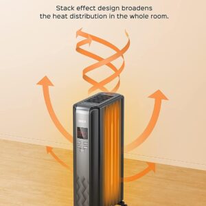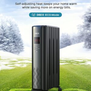 Dreo Radiator Heater, Upgrade 1500W Electric Portable Space Oil Filled Heater with Remote Control, 4 Modes, Overheat & Tip-Over Protection, 24h Timer, Digital Thermostat, Quiet, Indoor