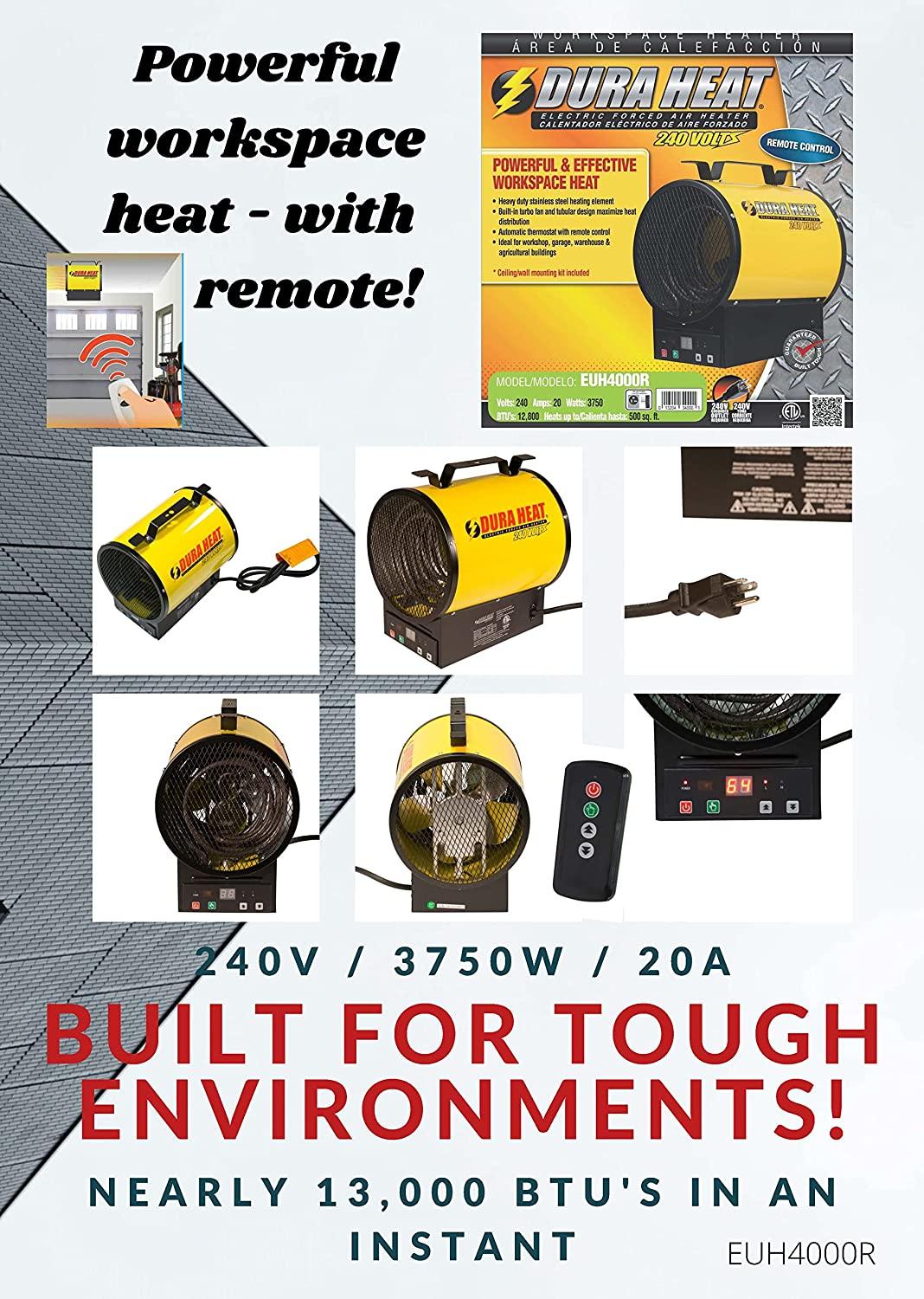 Dura Heat EUH4000R Electric Forced Air Heater with Remote Control 12,800 Btu