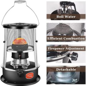 - ?Energy saving and protection design: Portable kerosene stoves do not require electric heating. All you need is kerosene and you’ll have tons of heat. Don’t worry about power outages when hurricanes, heavy rain and snow come. The kerosene stove has the characteristics of quietness, energy saving and environmental protection. (proper ventilation is recommended).