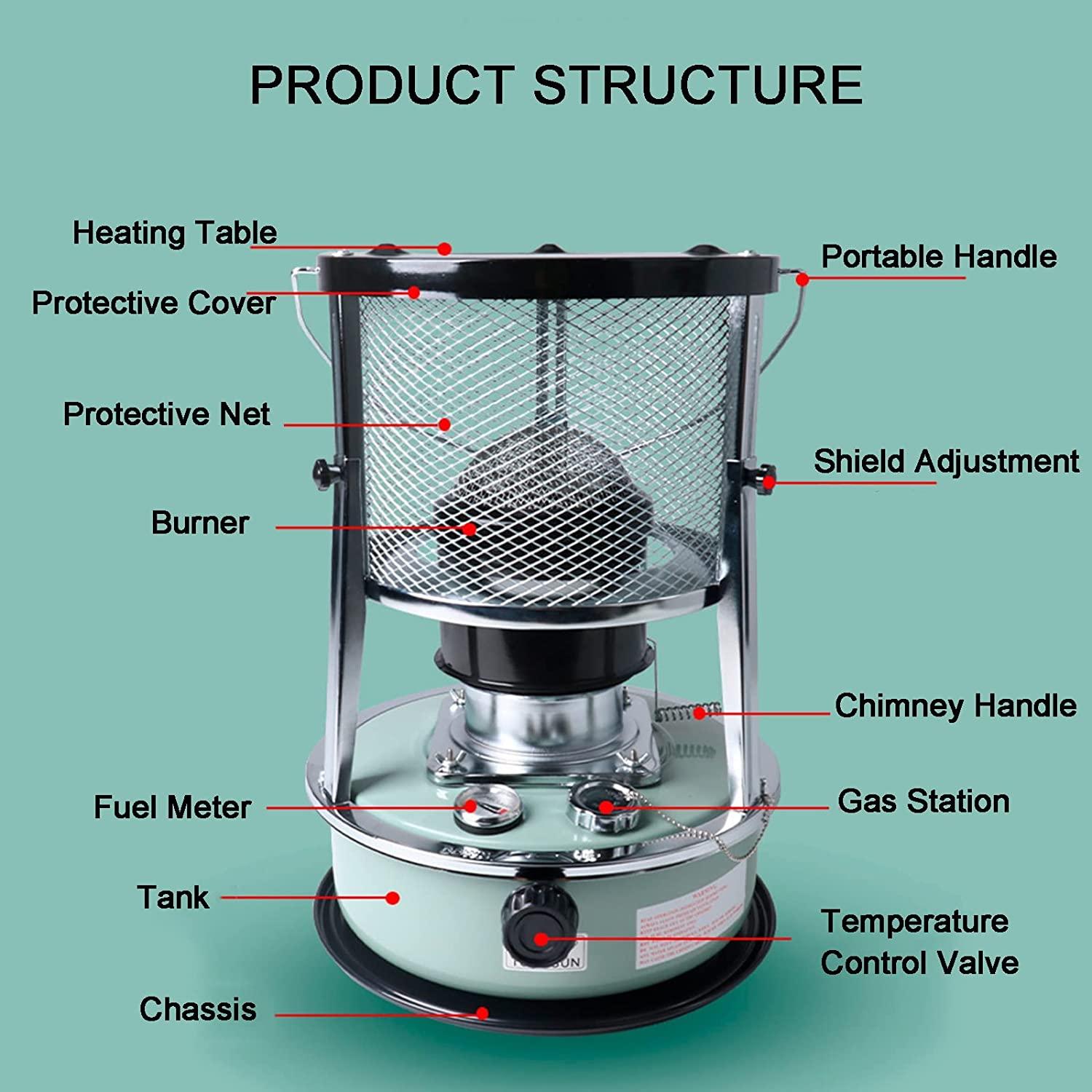 - EMERGENCY MEASURES:If the power goes out or the heating fails for a few days in the winter, all you need is oil and you’ll get a lot of heat. Kerosene heater indoor has the characteristics of mute, energy saving, smokeless, clean and environmental protection.