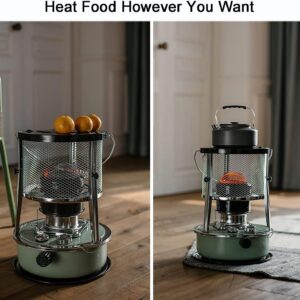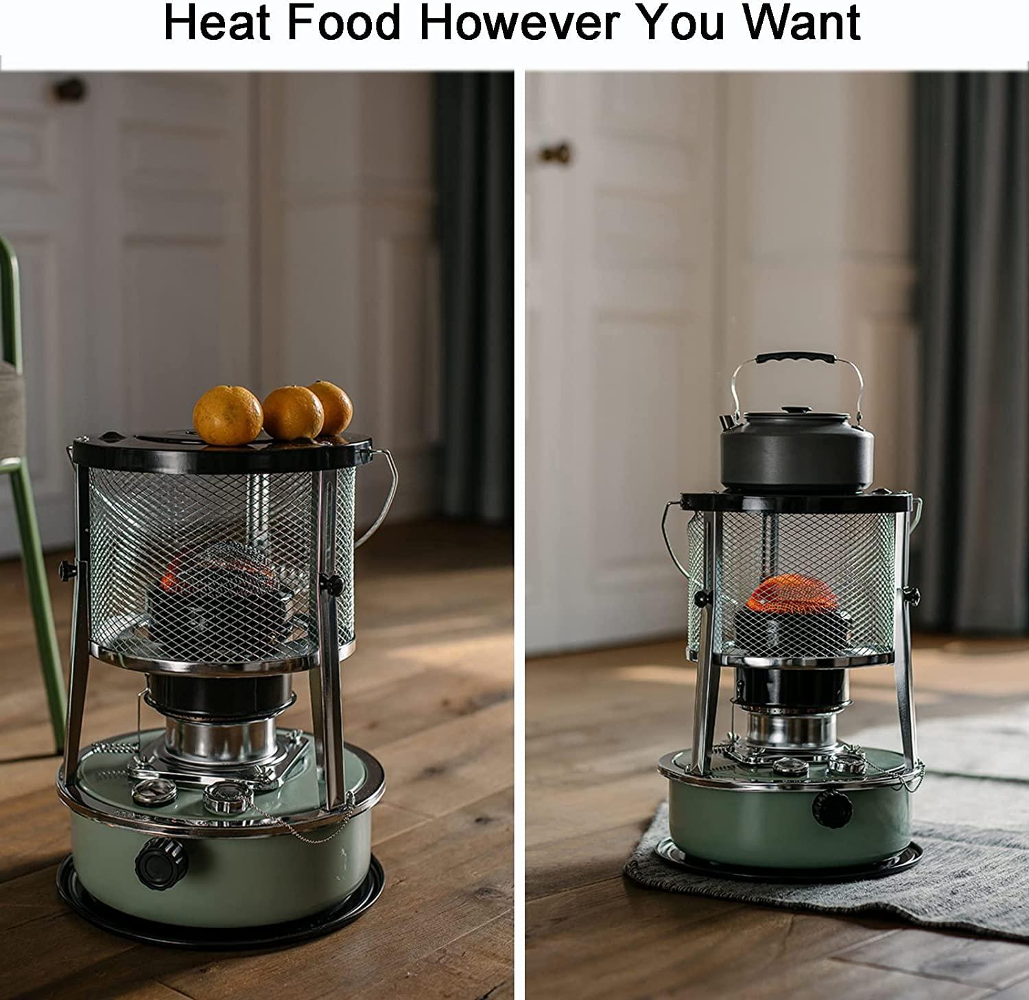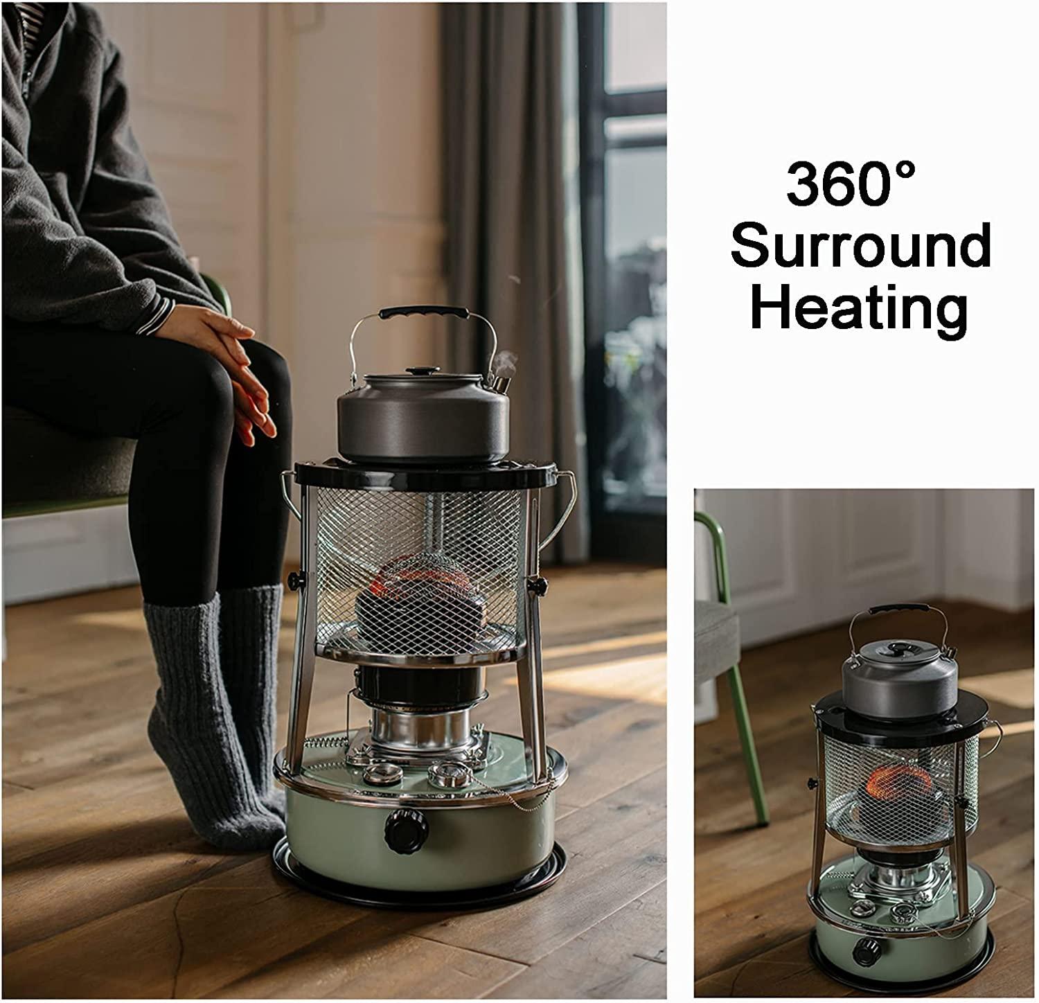 - MORE EFFICIENT KEROSENE HEATER:The combustion chimney of the indoor portable non-electric kerosene stove is made of special metal, which makes the kerosene burn completely, and the heating is faster and more efficient. 360° surround heating.