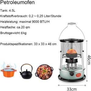 Efficient Kerosene Heaters for Indoor Use, Non Electric Fuel-efficient Convection Heater, Kerosene Stove Burner with Bag+4 Wick, Lightweight Portable, 4.5L, 360° Surround Heating
