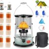 - EASY TO USE: The indoor kerosene heater has a rotary valve that adjusts the power according to your needs. There is a protective net on the outside of the small kerosene stove to effectively prevent burns.