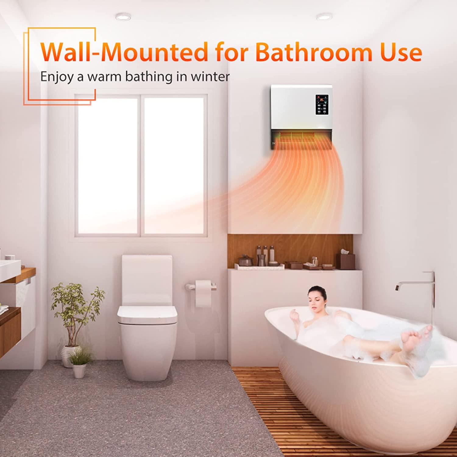 - Timer Function; The electric heater has smart timer function, you can set both Power-On timer and Power-Off timer; Set automatic power-on so that your room will heat up before you get home after work, your basement will be warm and dry before you get down; Set automatic power-off, in case that you may forget to turn off at night, minimizing power waste; Besides, the bathroom wall heater feature 3 modes, energy-saving mode, low mode, and high mode, just choose the perfect mode for any scenarios