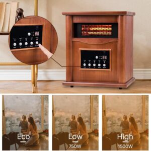 Electric Infrared Quartz Heater Deluxe Wood Cabinet with LED Digital Screen, Remote Control and Timer, Tip-Over & Overheat Protection, Quiet Space Heater for Indoor Use